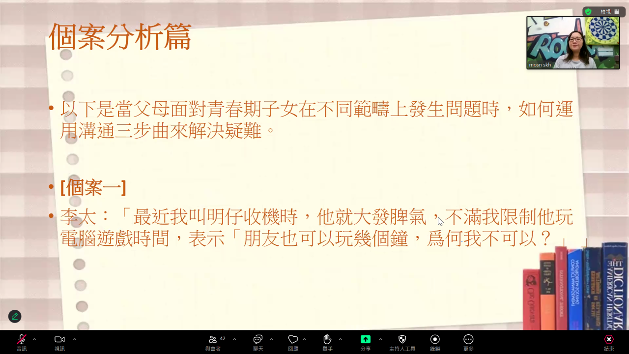 2025-12-10 有關這個活動:本校透過舉辦家長講座,讓家長掌握青春期子女的身心、社交發展和心理需要,讓家長更理解子女青春期階段的疑慮和轉變,同時教導家長一些建議的回應方法,提升與子女溝通的技巧。活動負責老師:香港聖公會馬鞍山(南)青少年綜合服務中心社工、何斯翹姑娘活動日期:2025年12月6日地點:ZOOM