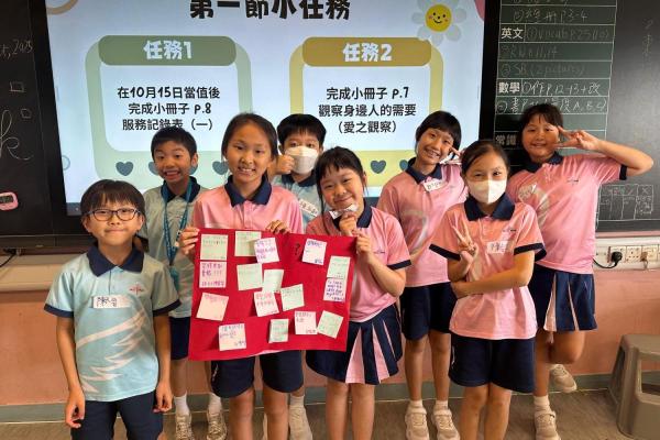 2026-01-08 有關這個活動:本計劃透過十節愛心大使小組訓練,引導學生學習關愛他人的方法與技巧,奠定實踐基礎。愛心大使需要為小一學生設計及推行多元化活動,例如製作及贈送小禮物、安排遊戲時間,以實際行動體現關愛精神活動負責老師:顏靜宜姑娘、何斯翹姑娘、馬卓琦姑娘活動日期:2025年10月-12月地點:4A/4B/4C課室