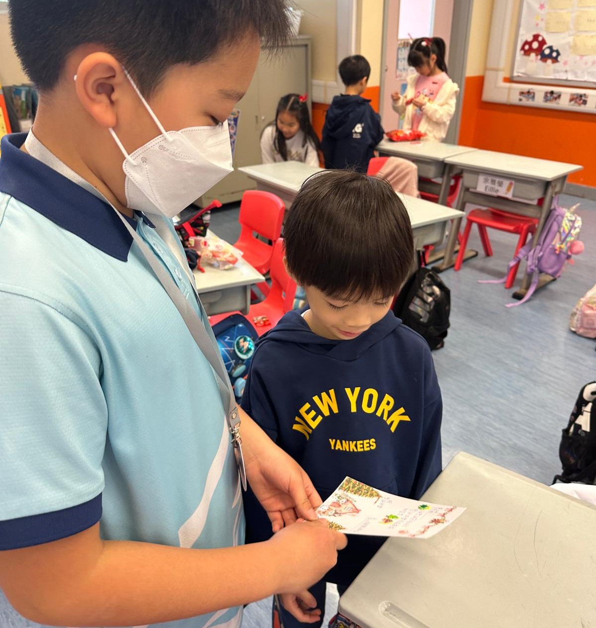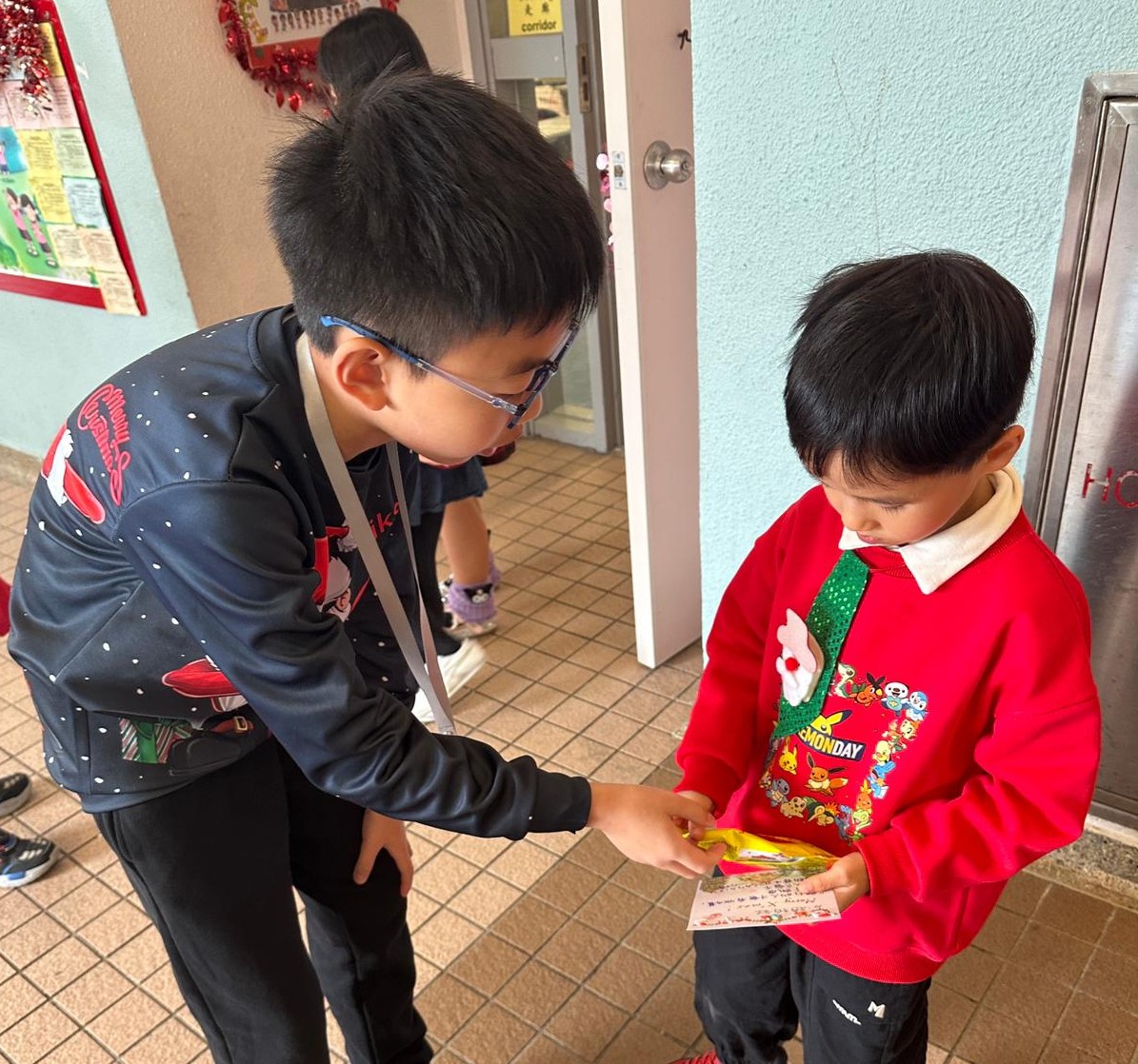 2026-01-08 有關這個活動:愛心大使親手設計及派發聖誕卡給小一同學,學習關心身邊人,推動校園關愛文化。活動負責老師:顏靜宜姑娘、何斯翹姑娘、馬卓琦姑娘活動日期:2025年12月22日地點:1樓樓層