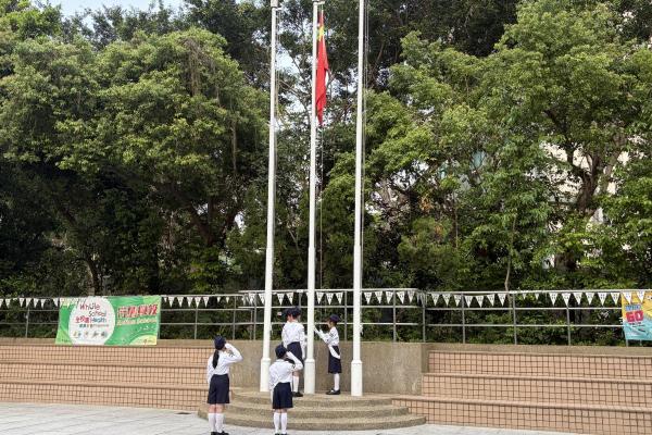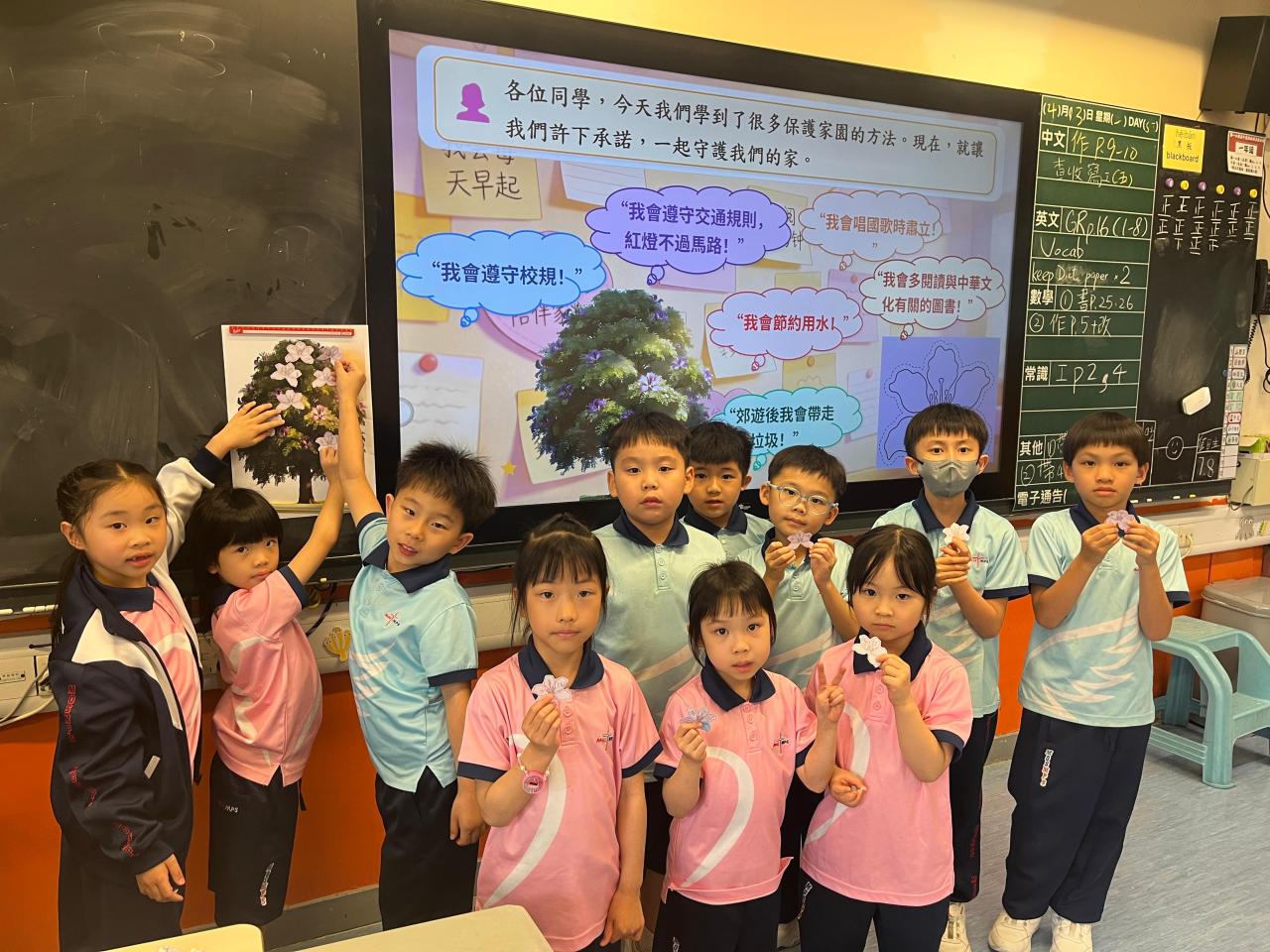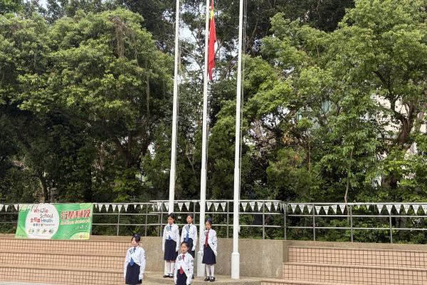 2026-04-16 活動描述:為響應「4月15日全民國家安全教育日」,全校師生於早會進行升旗禮,並透過專題活動讓學生明白國家安全對社會穩定性的重要。活動中,同學們透過遊戲及資料認識國家對我們的關係,最後在象徵香港的紫荊花上寫下如何守護國家安全的方法的承諾,如「我會遵紀守法」、「辨別偽資訊」等,然成貼在樹上,以小小的行動,表達維護國家安全,你我共築的決心。活動負責老師:林小燕主任活動日期:2026年4月15日地點:本校