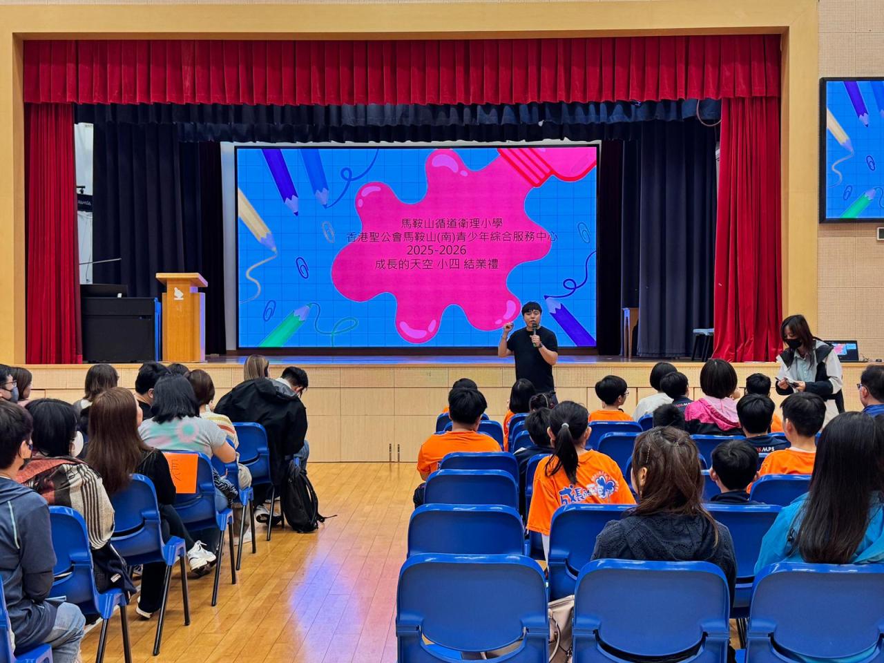 2026-03-31 有關這個活動:透過結業禮,組員以表演及分享形式將學習成果與家長及老師分享,從而提升組員的自信心及抗逆力。活動負責老師:香港聖公會馬鞍山(南)青少年綜合服務中心社工、顔靜宜姑娘、劉家健先生、梁蕙嘉老師、劉秀敏老師、蘇詠嫻老師、盧文輝老師、洪慧穎老師活動日期:2026年3月27日地點:本校禮堂