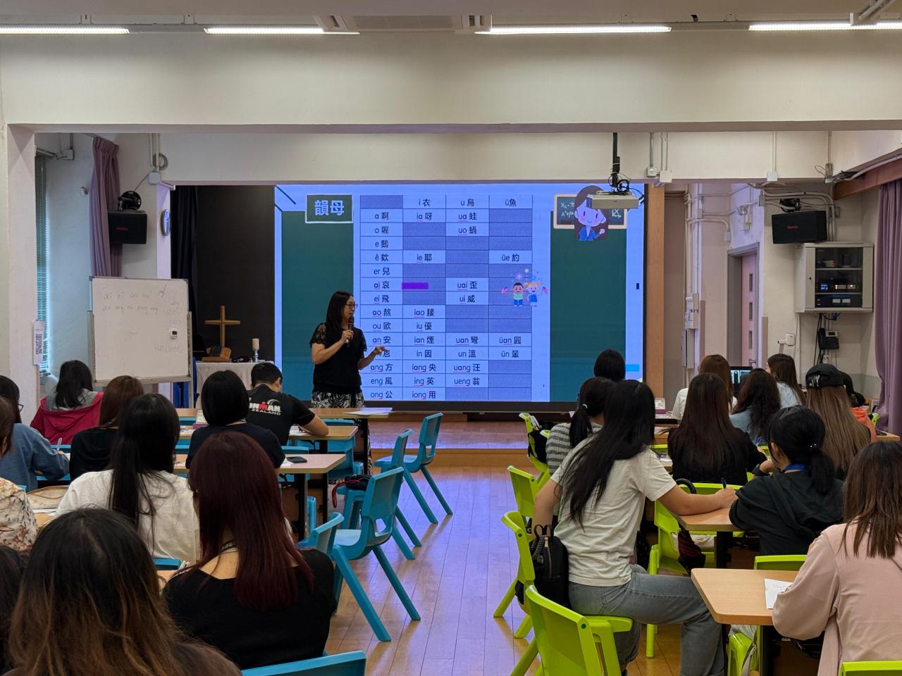 2025-12-01 活動描述:為了家長可在家協助子女溫習普通話拼音, 家長教師會較早前舉辦了「普通話拼音家長工作坊」。是次工作坊,家長反應熱烈,氣氛良好, 家長表現投入。活動負責老師:譚凱妮副校長活動日期:2025年11月6日地點:小禮堂