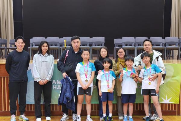 2025-12-01 活動描述:在11月29日(星期六),馬循4位運動員,包括:4C勞晞樂、6B莫子駿、6B譚樂橋及6C李沛萳參加林裘謀中學羽毛球邀請賽,各同學在場上發揮水平,奪得團體冠軍。活動負責老師:陳嘉明主任活動日期:2025年11月29日地點:聖公會林裘謀中學