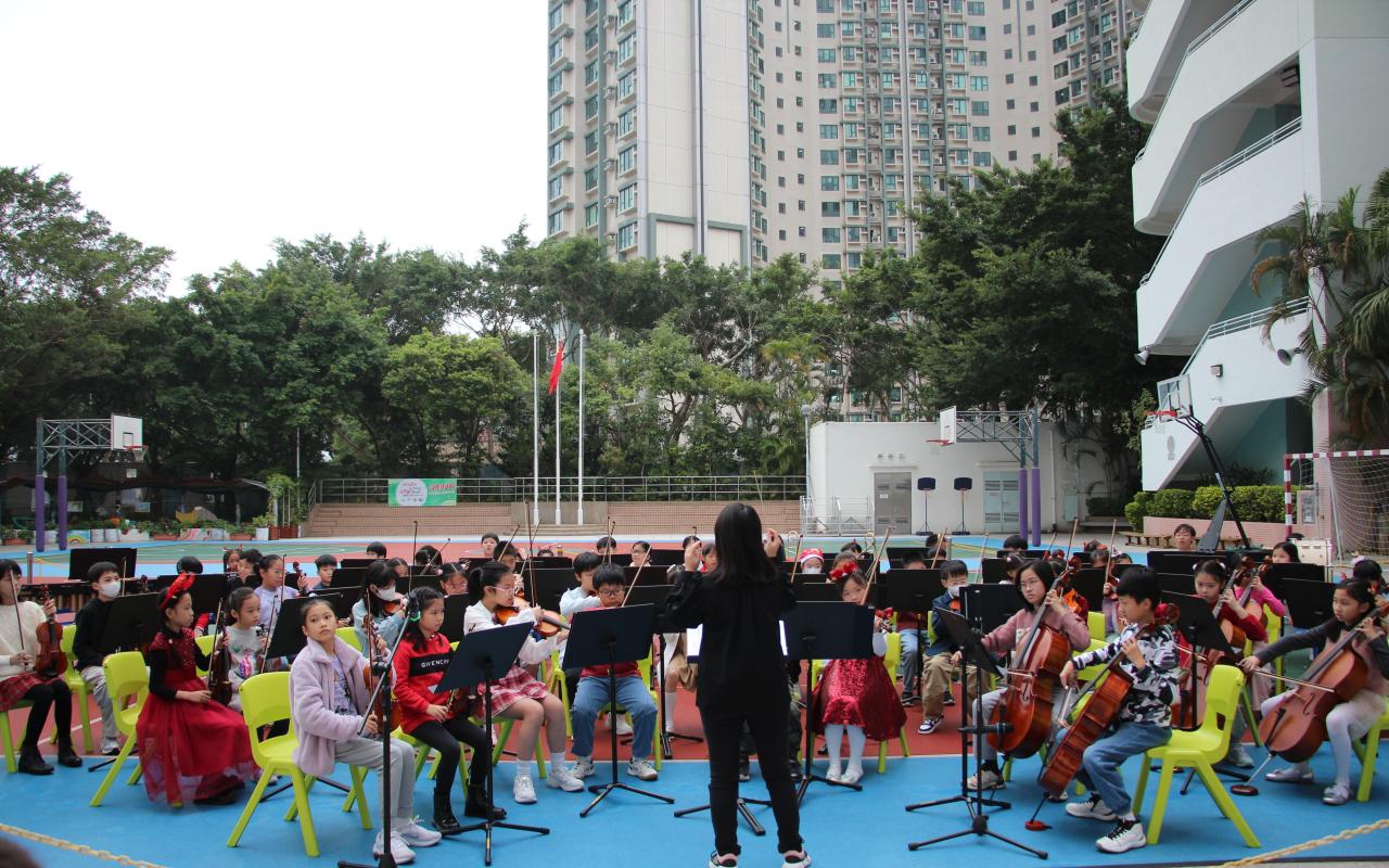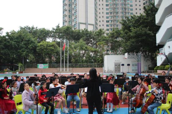 2025-12-29 活動描述:管弦樂團在地下操場演奏聖誕歌曲,希望藉透過活動,讓同學感受聖誕節的氣氛,同時也明白聖誕節的意義,同頌主救贖恩典。活動負責老師:蔡詠德老師活動開始日期:2025年12月22日地點:本校操場