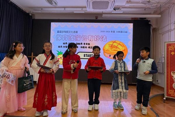 2026-03-02 文字描述:2月13日(星期五) 為認識中國文化活動的最後一天,各級活動非常豐富,同學從專題研習活動中,認識中國文化。五年級的活動:以「保存香港文化」為題的專題匯報。日期:2026年2月13日地點:本校