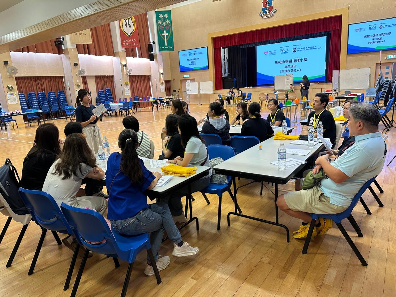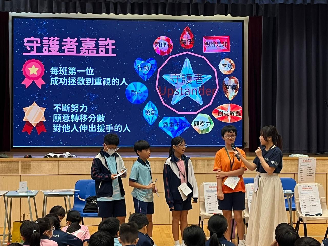 2025-10-09 有關這個活動:邀請家長義工協助為P.5-6學生進行以《守護我愛的人》為主題的體驗活動,提升學生面對逆境的抗逆能力及建立正面價值觀,推動校園關愛文化。活動負責老師:香港小童群益會社工、顏靜宜姑娘、馬卓琦姑娘、何斯翹姑娘、劉家健先生活動日期:2025年10月9日地點:4樓禮堂