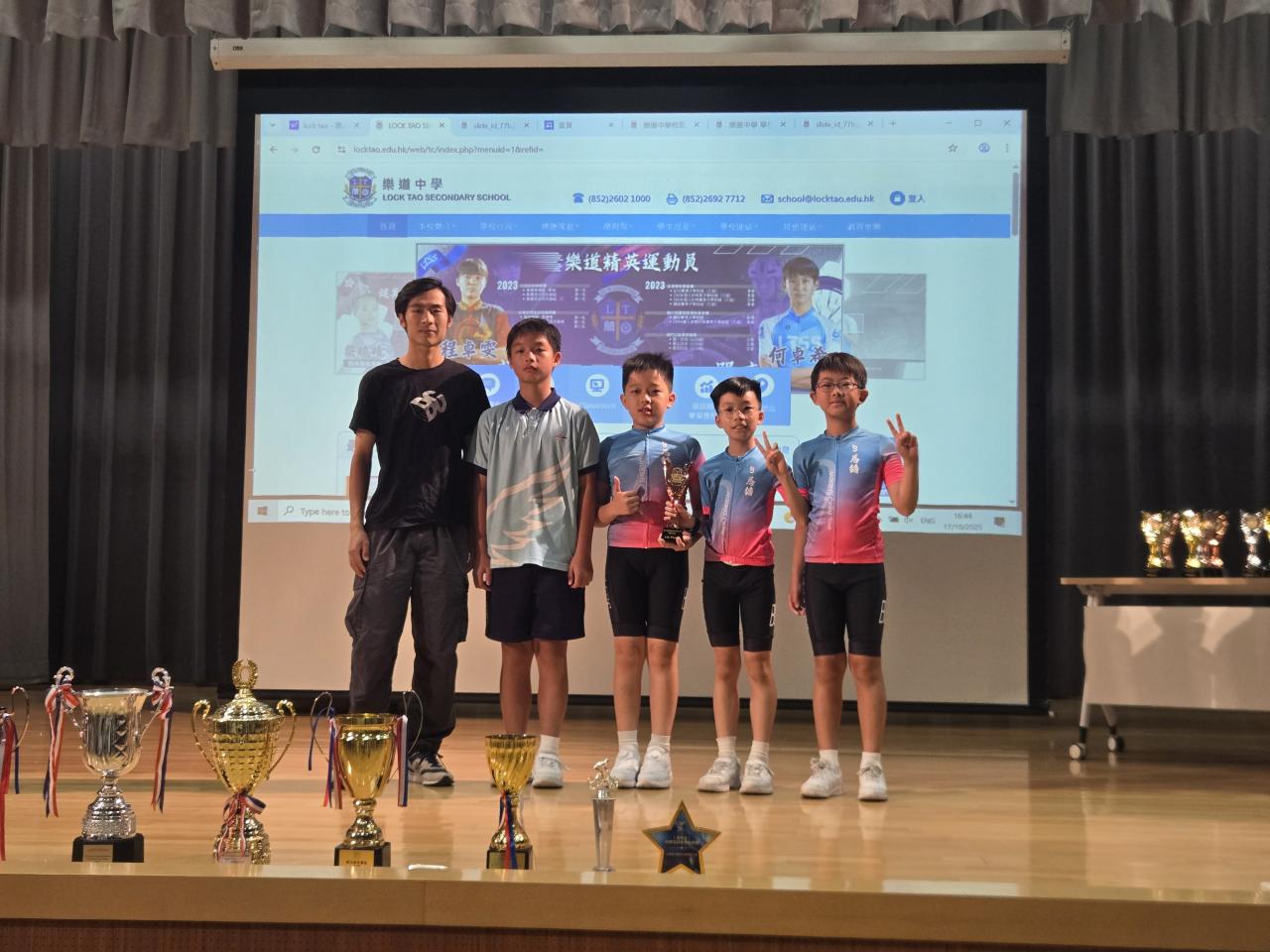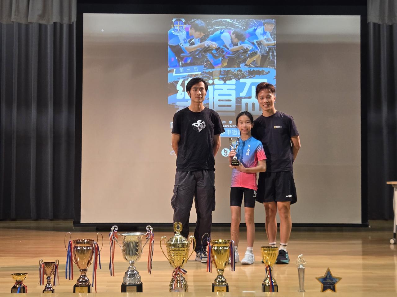 2025-10-17 有關這個活動:在第三屆樂道盃電競單車比賽中,本校單車隊表現優異,榮獲多項獎項!6E王煜偉在男子個人爭先賽(1km)奪得冠軍;在女子組方面,5C梁青嵐獲得個人爭先賽(1km)亞軍,4C洪樂桐獲得女子個人捕捉賽(3km)冠軍。最後,團體接力賽中,本校也展現了團隊合作的精神,最終獲得殿軍的佳績。活動負責老師:伍頌研主任活動日期:2025/10/17(年/月/日)地點:樂道中學