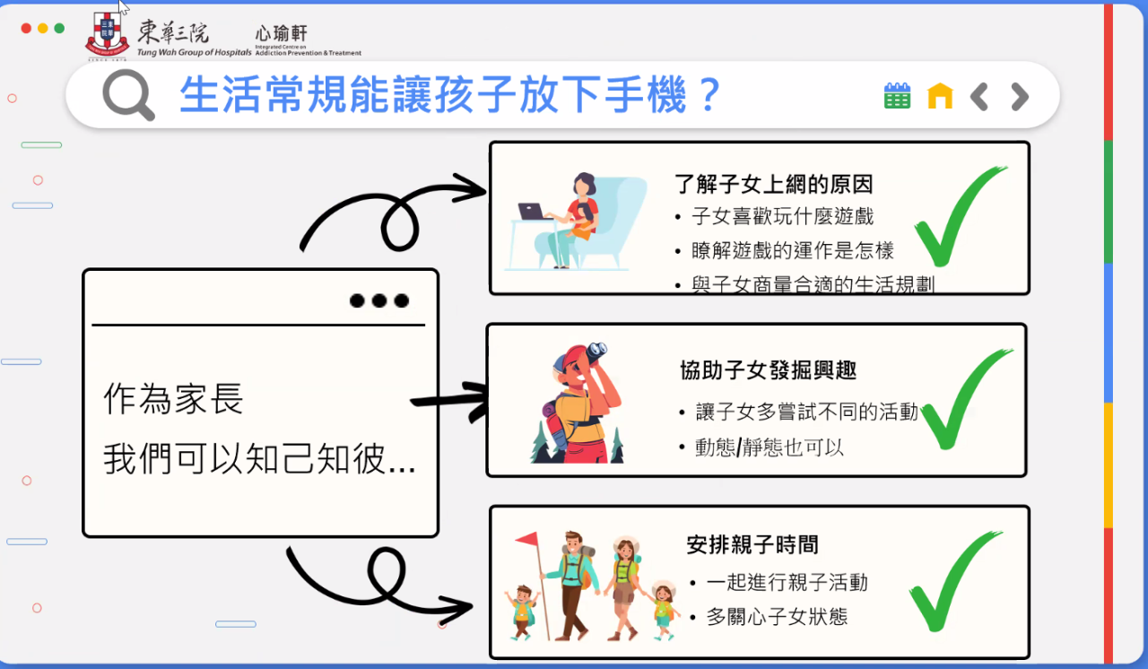 2026-02-26 有關這個活動:本校透過舉辦家長講座,讓家長了解孩子對電子產品的需要,並學習有效管教子女恰當地使用電子產品的方法。活動負責老師:東華三院「e世代健康支援網絡」社工陸姑娘、何斯翹姑娘活動日期:2026年2月7日地點:ZOOM