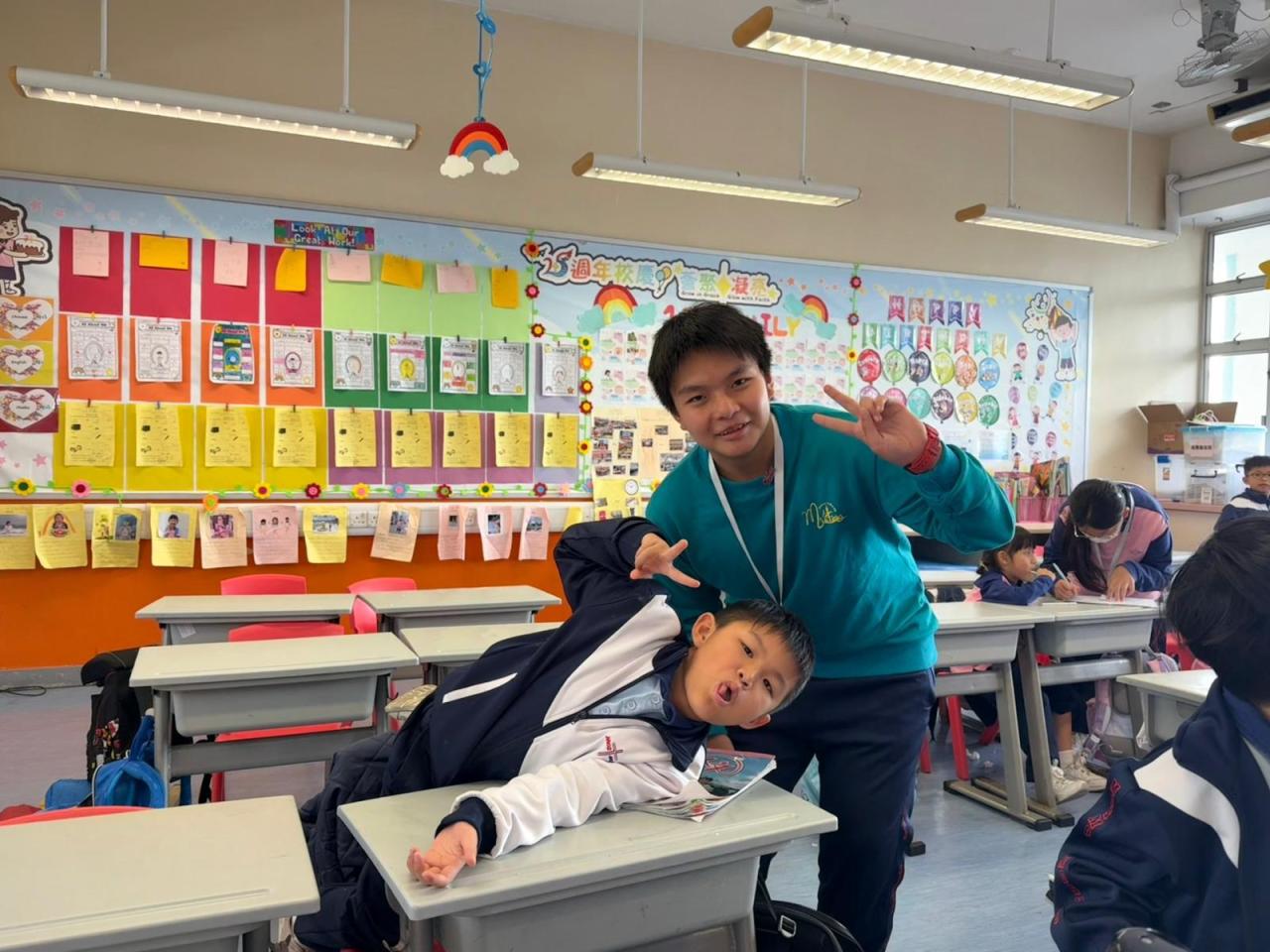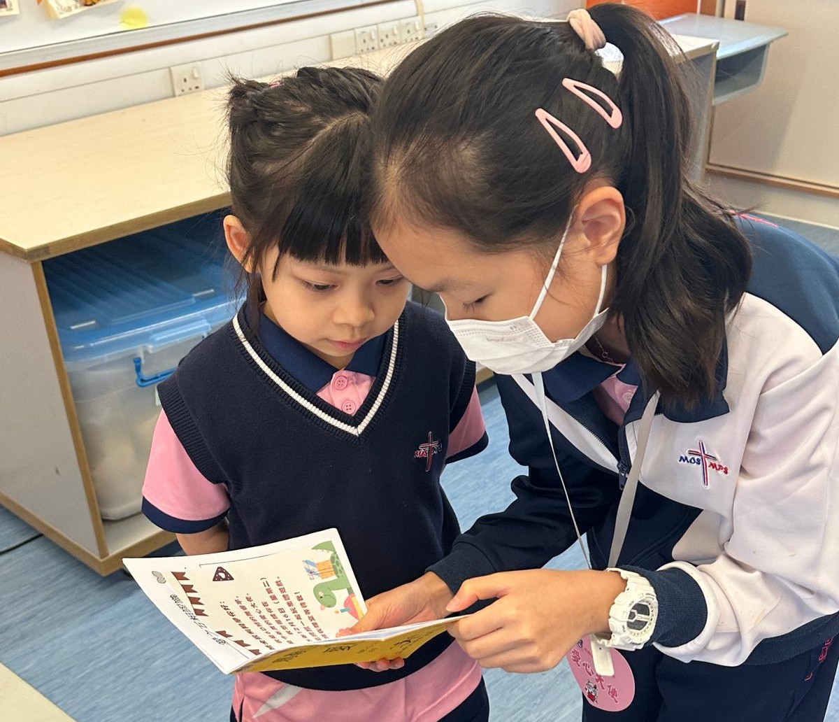 2026-01-08 有關這個活動:愛心大使與小一同學溫馨互動及互相認識,同時細心聆聽與了解小一同學的興趣所向,藉此規劃並舉辦合適的興趣小組活動。活動負責老師:顏靜宜姑娘、何斯翹姑娘、馬卓琦姑娘活動日期:2025年11月28日地點:1樓樓層
