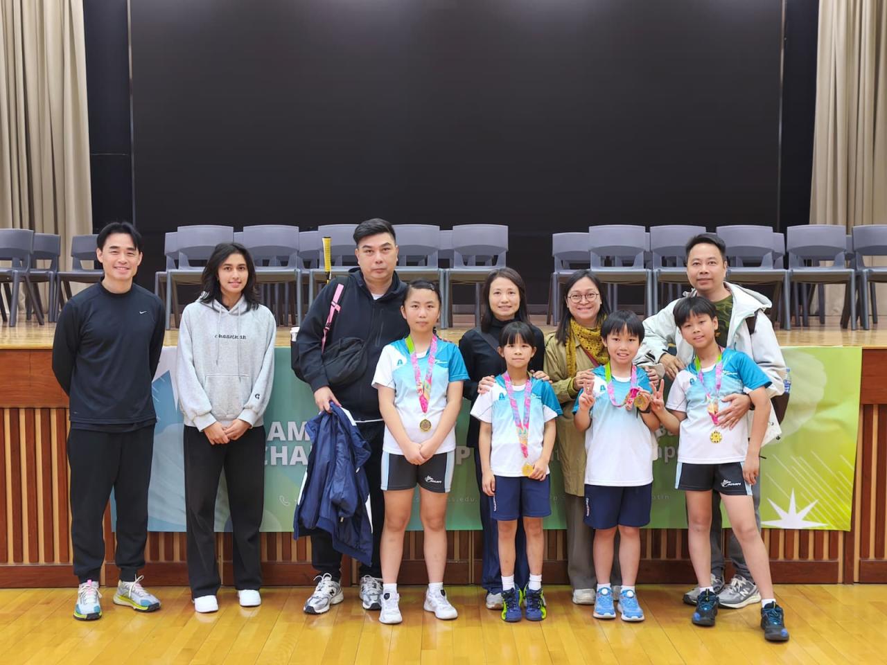 2025-12-01 活動描述:在11月29日(星期六),馬循4位運動員,包括:4C勞晞樂、6B莫子駿、6B譚樂橋及6C李沛萳參加林裘謀中學羽毛球邀請賽,各同學在場上發揮水平,奪得團體冠軍。活動負責老師:陳嘉明主任活動日期:2025年11月29日地點:聖公會林裘謀中學