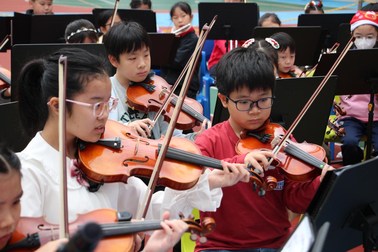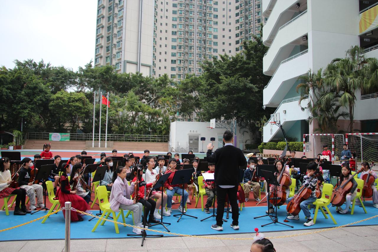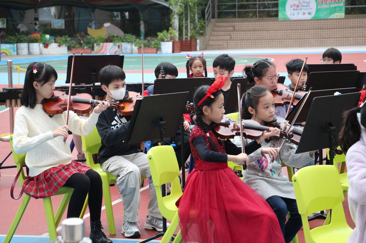 2025-12-29 活動描述:管弦樂團在地下操場演奏聖誕歌曲,希望藉透過活動,讓同學感受聖誕節的氣氛,同時也明白聖誕節的意義,同頌主救贖恩典。活動負責老師:蔡詠德老師活動開始日期:2025年12月22日地點:本校操場