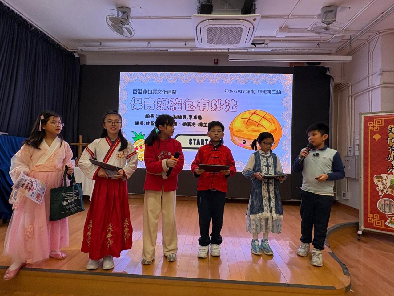 2026-03-02 文字描述:2月13日(星期五) 為認識中國文化活動的最後一天,各級活動非常豐富,同學從專題研習活動中,認識中國文化。五年級的活動:以「保存香港文化」為題的專題匯報。日期:2026年2月13日地點:本校