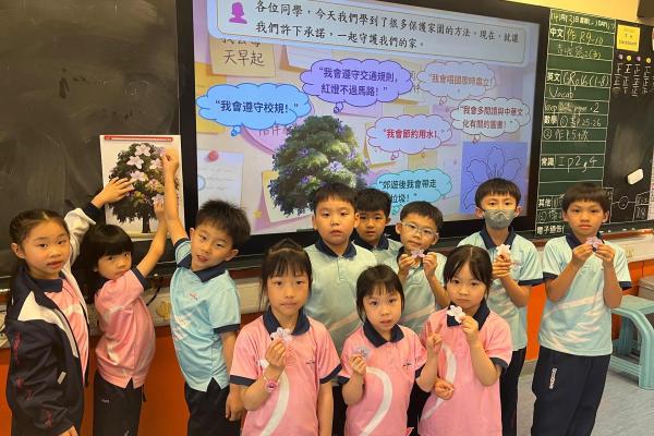 活動中,同學們透過遊戲及資料認識國家對我們的關係,最後在象徵香港的紫荊花上寫下如何守護國家安全的方法的承諾,如「我會遵紀守法」、「辨別偽資訊」等,然成貼在樹上,以小小的行動,表達維護國家安全,你我共築的決心。