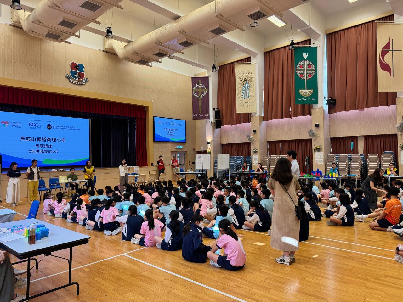 2025-10-09 有關這個活動:邀請家長義工協助為P.5-6學生進行以《守護我愛的人》為主題的體驗活動,提升學生面對逆境的抗逆能力及建立正面價值觀,推動校園關愛文化。活動負責老師:香港小童群益會社工、顏靜宜姑娘、馬卓琦姑娘、何斯翹姑娘、劉家健先生活動日期:2025年10月9日地點:4樓禮堂